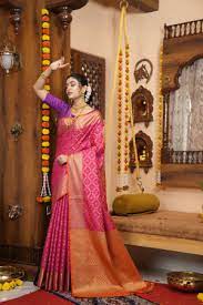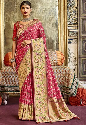 Exclusive Wedding Party Wear Designer Sari. Lavender Shimmer Silk Georgette Stones, Sequins, Resham Zari Thread Embroidery Scallop Bordered Saree of 5.50 mts. with Tassels. Purple Raw Silk Unstitched Full Work.
